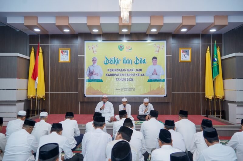 Sayap.News.Barru— Suasana khidmat menyelimuti pelaksanaan dzikir dan doa bersama dalam rangka memperingati Hari Jadi Kabupaten Barru ke-66 Tahun 2026 yang digelar di Baruga Singkerru Adae, Rumah Jabatan Bupati Barru, Selasa malam (7/4/2026).